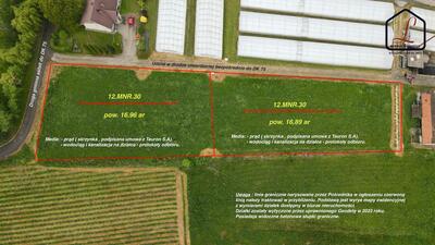 4Oferujemy do sprzedaży: Dwie atrakcyjne sąsiadujące ze sobą działki budowlane: NR 1 o pow. 16,96 a NR 2. o ...